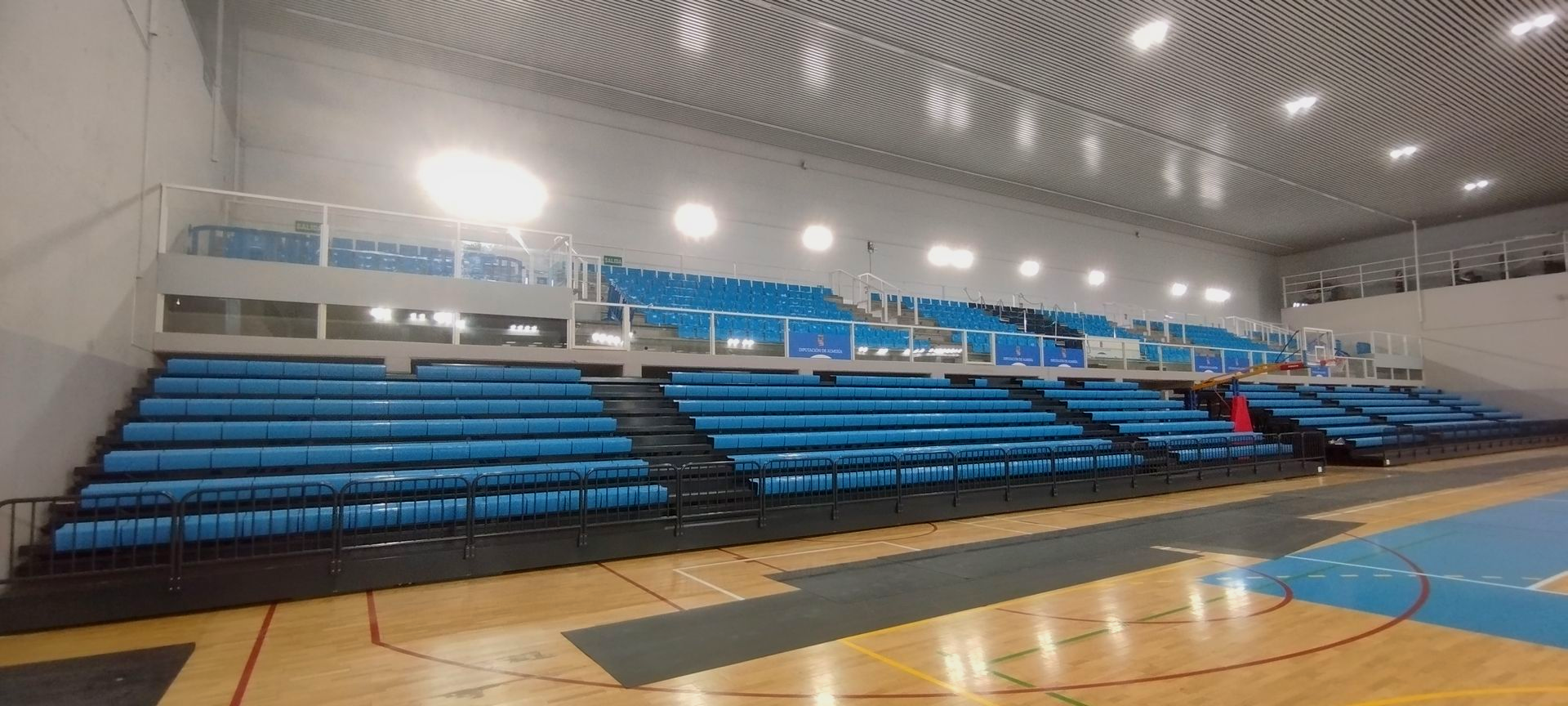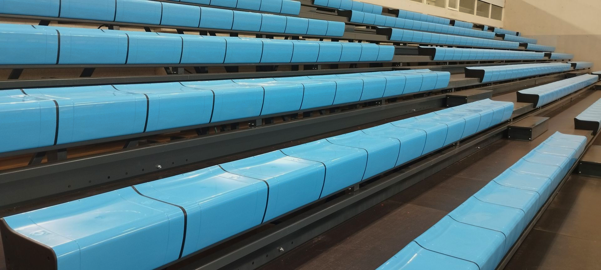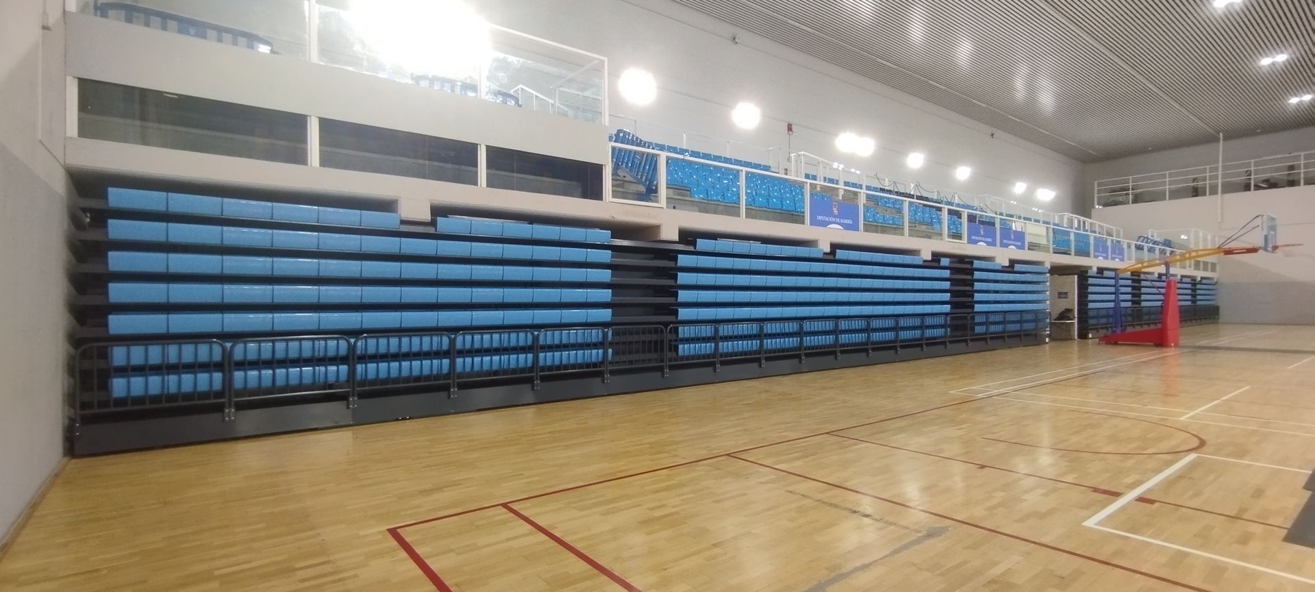 El sistema instalado cuenta con un nuevo asiento elevado de plástico, diseñado específicamente para mejorar la visibilidad del espectador, aumentar el confort y cumplir con los requisitos de seguridad exigidos en instalaciones deportivas cubiertas. Las gradas telescópicas alcanzan una capacidad total de 630 espectadores, permitiendo una gestión flexible del espacio y una rápida adaptación a diferentes usos deportivos y eventos.