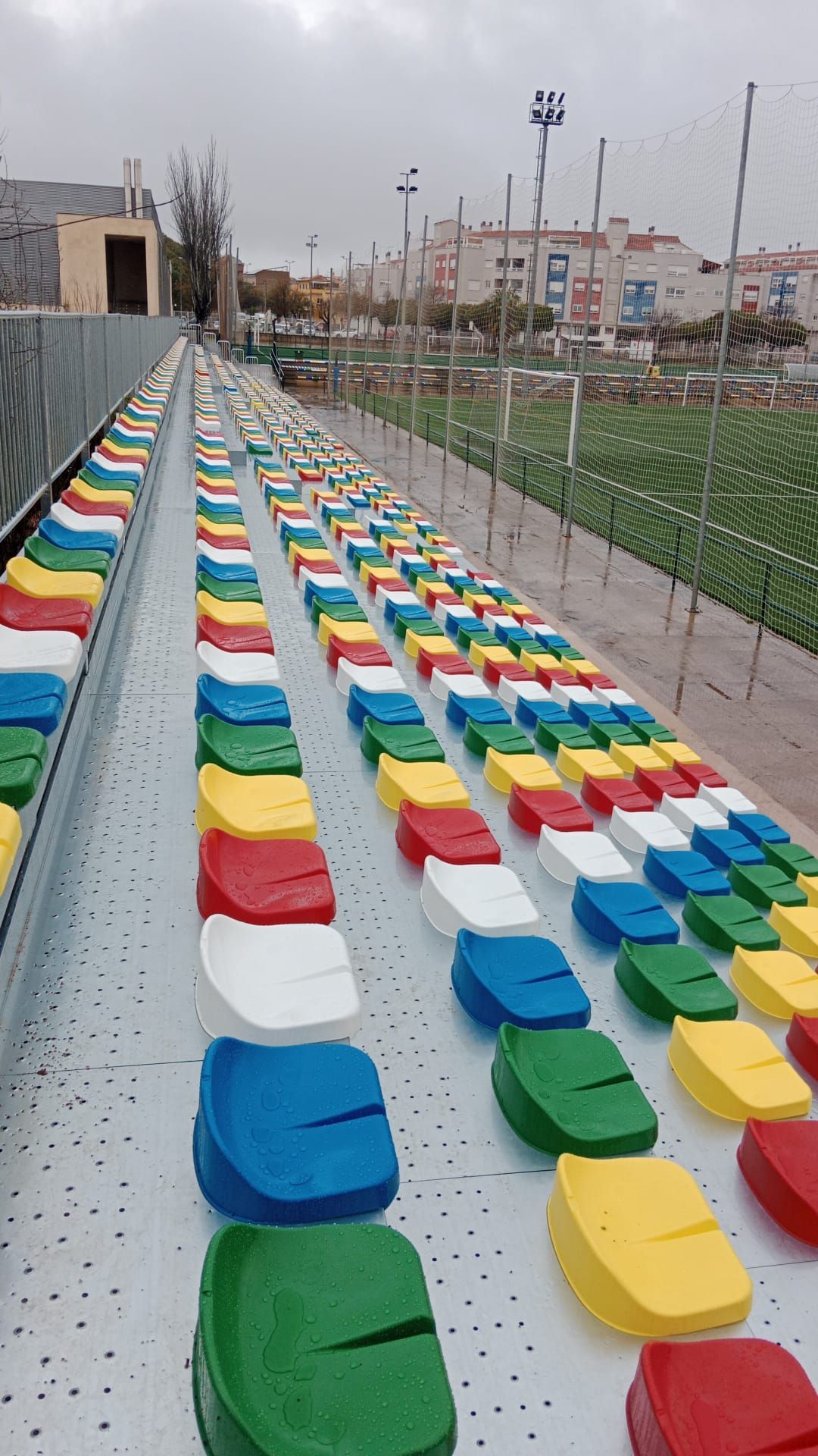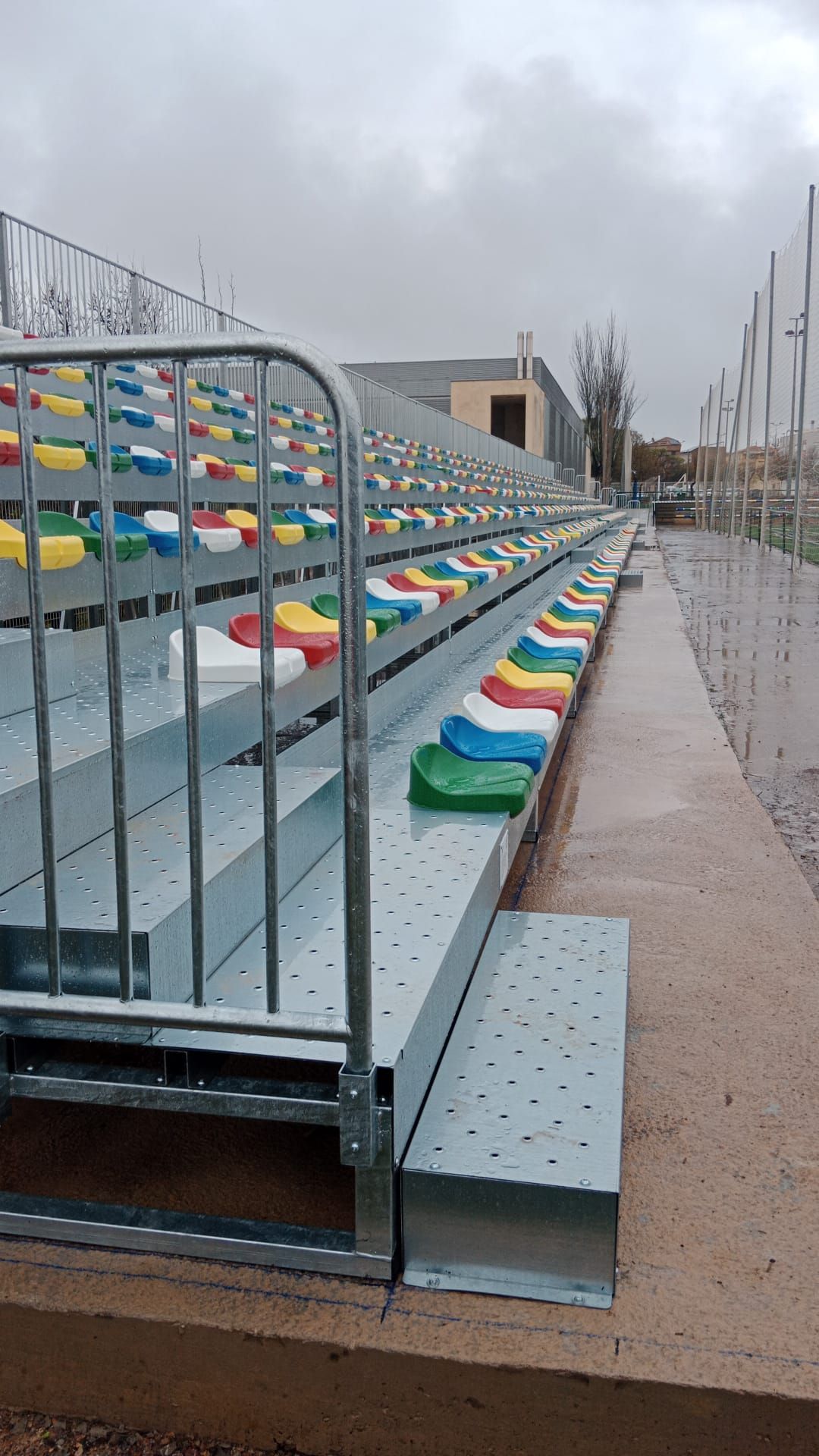 A clear example is our latest installation: a 65-meter-long stand with 7 rows and capacity for 820 spectators, designed and manufactured under the highest safety standards.